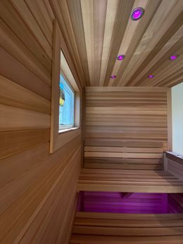 Specialty installations including custom saunas, steam rooms, steam showers, and built-in cabinetry tailored to wellness and function